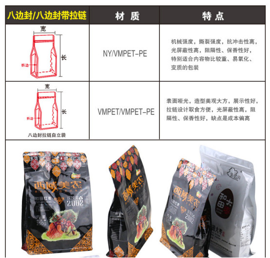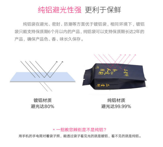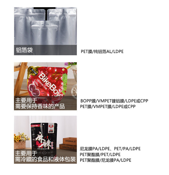 材質(zhì):PET鍍鋁/BOPP/PET/CPP/LDPE多層復(fù)合(可定制)