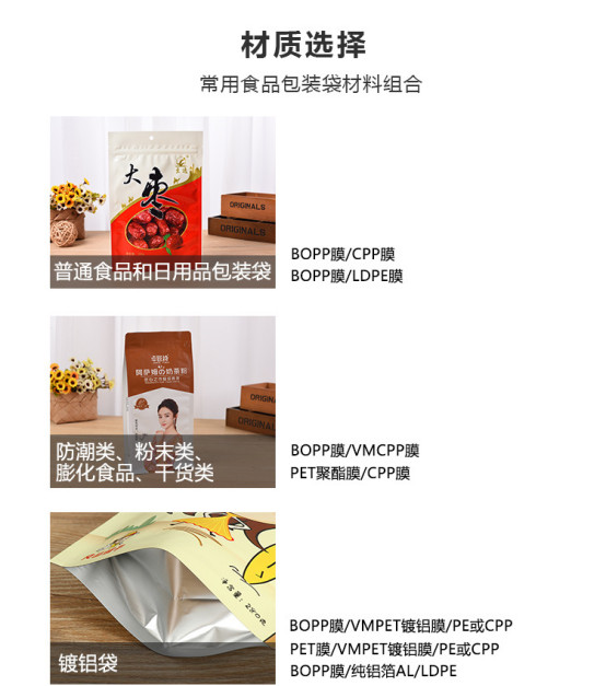 材質(zhì)工藝:采用PET鍍鋁BOPP/PET/PA/CPP/LDPE兩層或多層復(fù)合